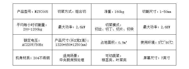效率高效,一台机器可节约大量的成本,降低了成本,提高了效率,是厨房的必备设备。切菜机的使用率高,切菜速度快,切菜精度高,切菜质量好,是厨房的首选。